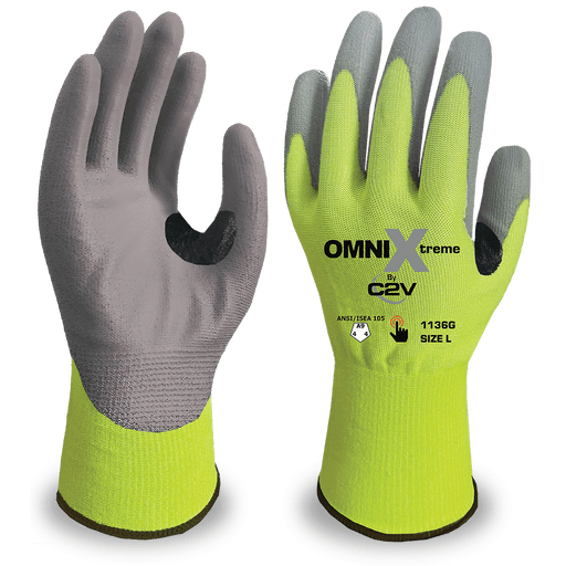 ANSI A9 Omni Xtreme Cut Resistant Gloves, 18 Gauge Engineered HPPE Shell, Gray Polyurethane Coated Palm, Touchscreen - 1 Pair