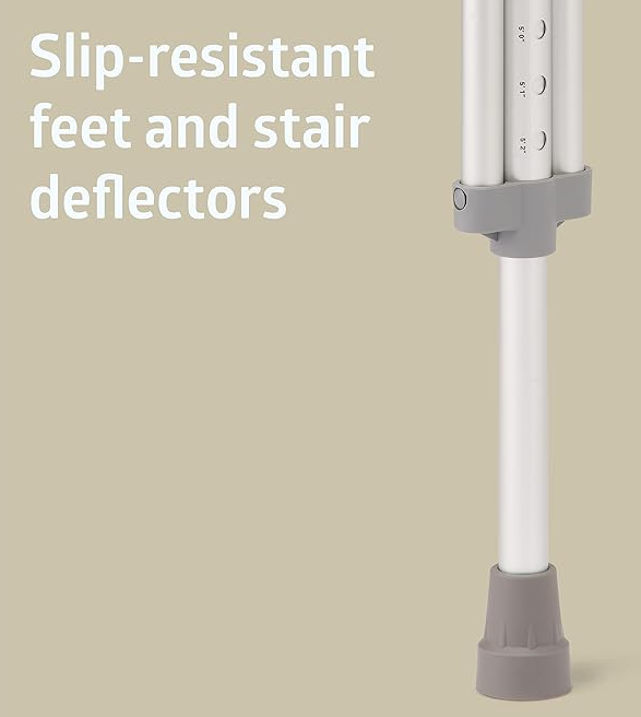 - DURABLE accessories like slip-resistant feet & stair deflectors provide added traction to increase the user’s comfort. Padded armpit cushions help reduce underarm discomfort.