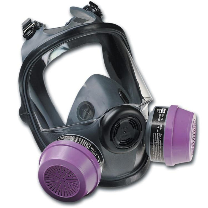 Full face respirator can be used as part of a PAPR or supplied air system.