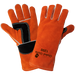 Premium shoulder split cowhide welders gloves. Russet color featuring aramid fiber sewn stitching, reinforced wing thumb, double reinforced thumb crotch, hem cuff, full semi-sock thermal-knit cotton lining for added heat protection, and welting in all vulnerable seams for added durability. They are generously sized to reduce hand fatigue. 13 inch Length